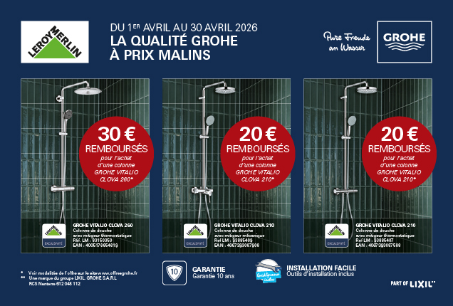 Jusqu’à 10€ remboursés sur une sélection de produits GROHE QUICKFIX
