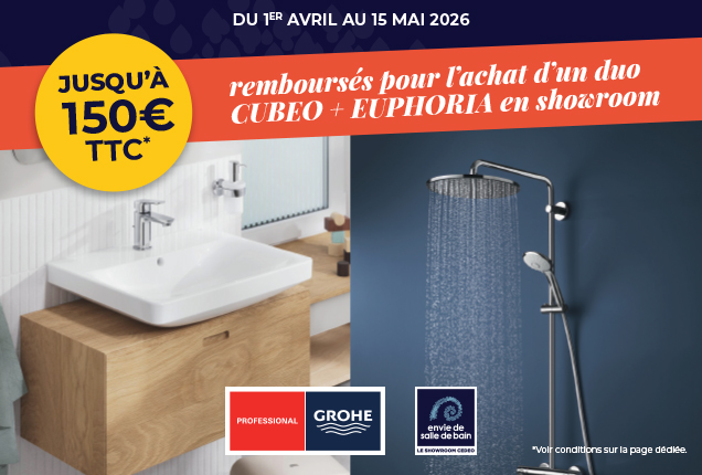 GROHE VOUS OFFRE JUSQU'À 150€ avec les gammes CUBEO & EUPHORIA !